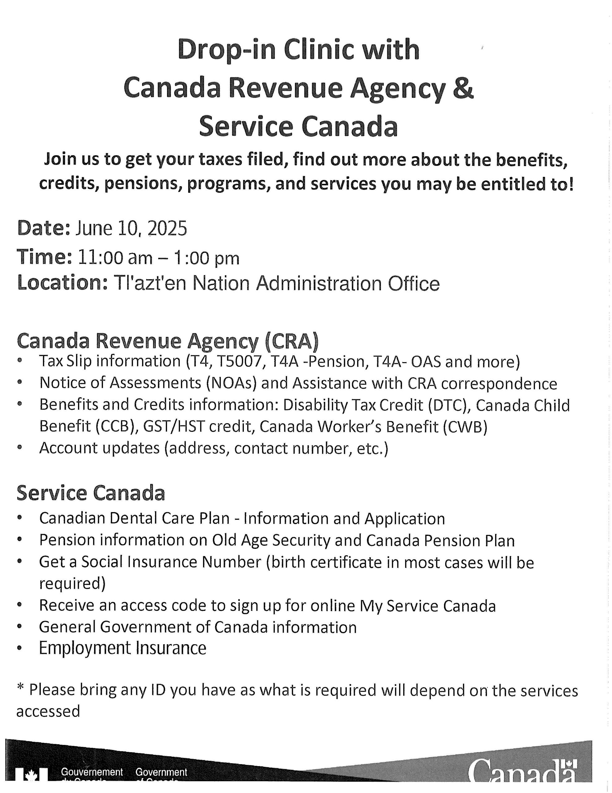 Drop-in Clinic with CRA and Service Canada